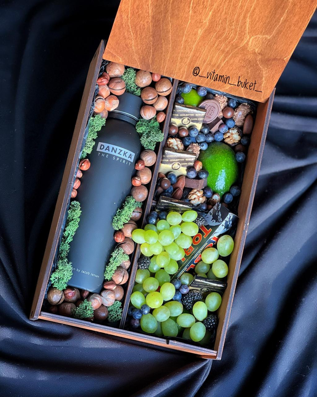 Подарочный бокс с орехами, ягодами и шоколадом (алкоголь оплачивается отдельно)