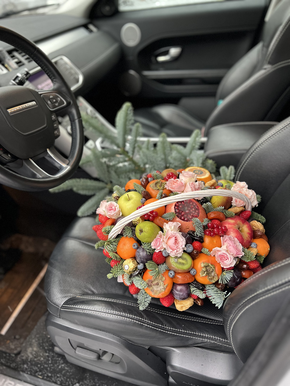 Корзина фруктовая с цветами 35 см